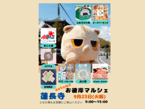 朝晩は涼しい風🌬️が心地よいですが、例年と違い酷暑に等しい残暑です。🥵 お身体お大事にして頂きまして、熱中症対策を万全にしてください。🙏 今年も、蓮長寺では秋のお彼岸にあわせまして、マルシェを開催いたします。 お墓参りの […]